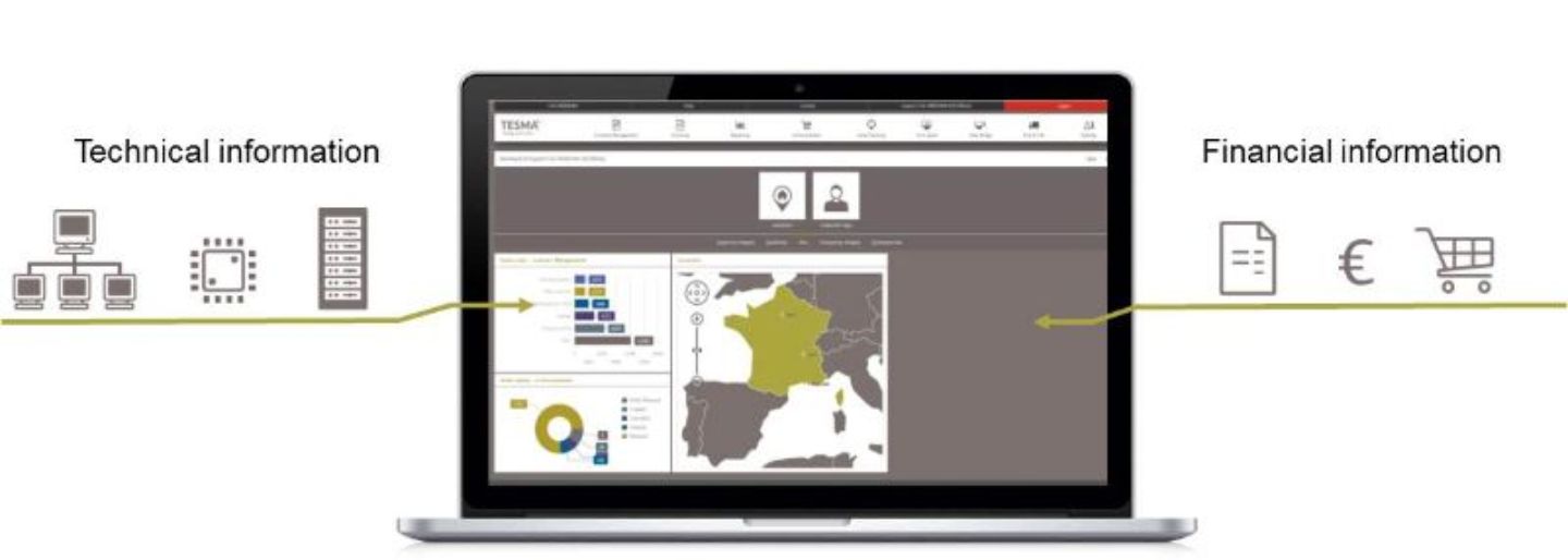 What makes the application so special? It links two worlds that otherwise often exist separately from one another: the business world and the technology world. TESMA® collects technical information such as equipment types, features, locations, and consumption levels, as well as financial information like rental rates, cost centers, financing periods or consumables costs.